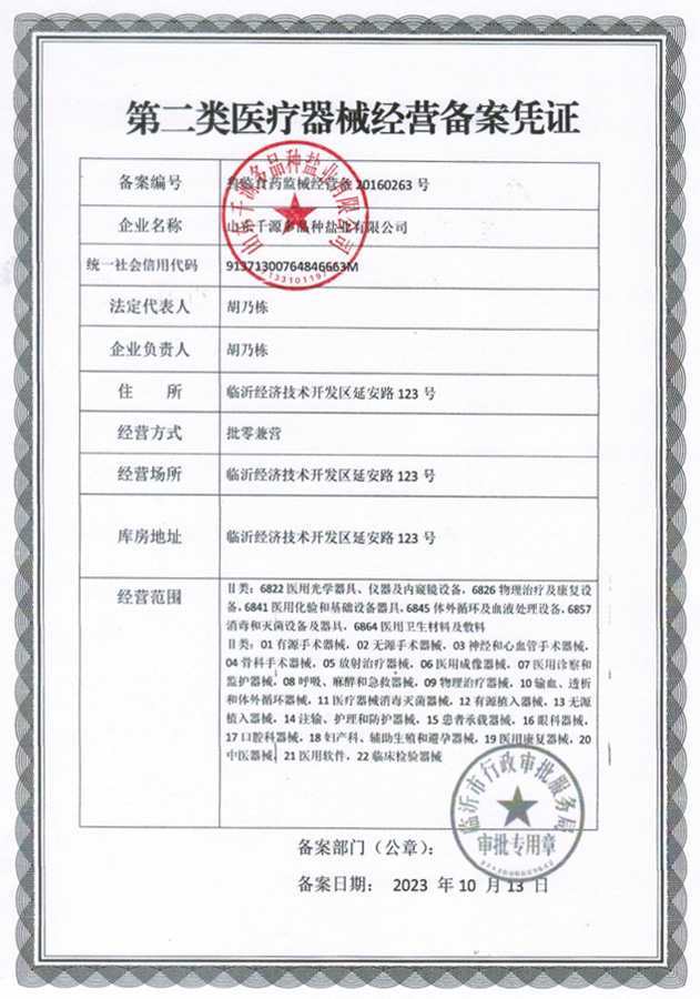 第二類(lèi)醫療器械經(jīng)營(yíng)備案憑證